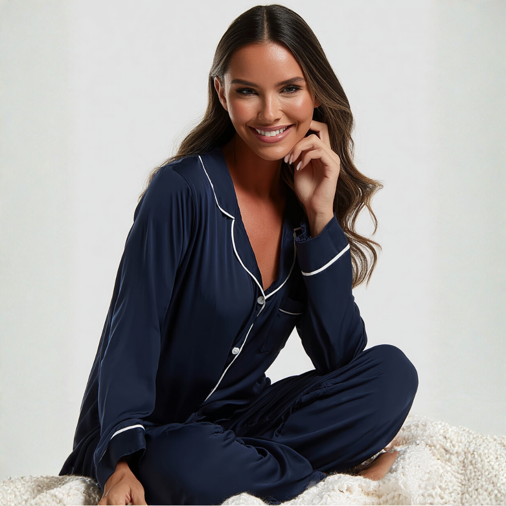 Marineblå bambuspyjamas
